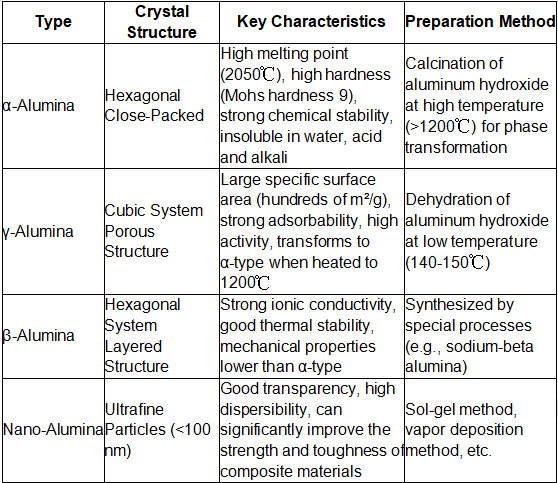 طبقه بندی اصلی پودر آلومینا بر اساس ساختار کریستالی و فرآیند آماده سازی آن است. انواع متداول و ویژگی های آنها به شرح زیر است: